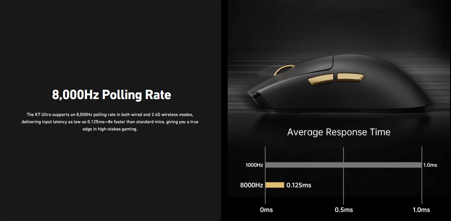 | Polling Rate | Wired 8K + Wireless 8K | ||||