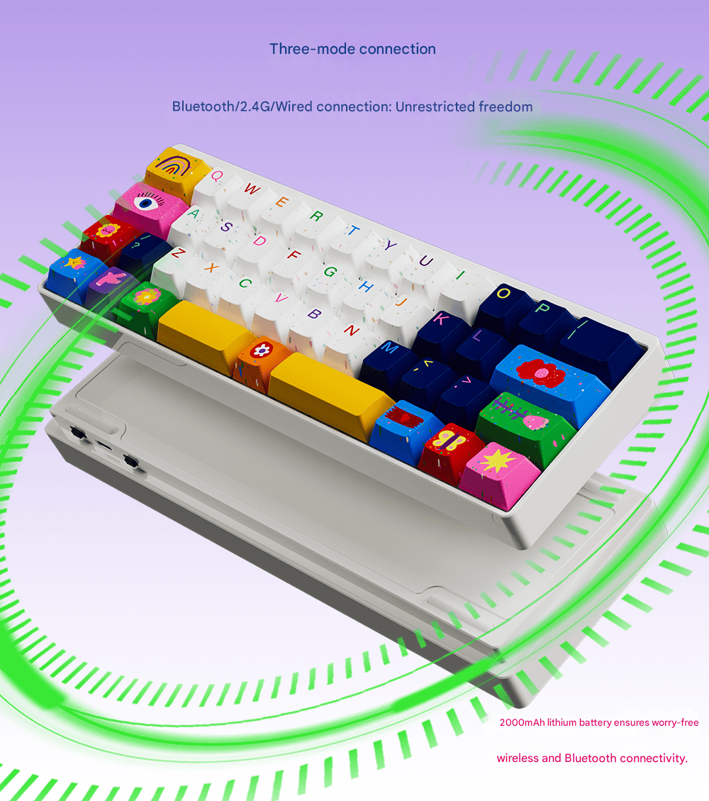 - 3 Modes kết nối: USB Type C, Bluetooth, 2.4GHz